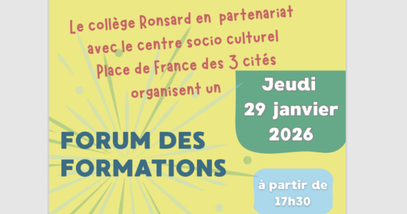 Le Forum des Métiers du Collège Pierre de Ronsard ! Le mercredi 21 janvier 2026, de 9h à 12h, le collège Pierre de Ronsard de Poitiers organise un Forum des […]